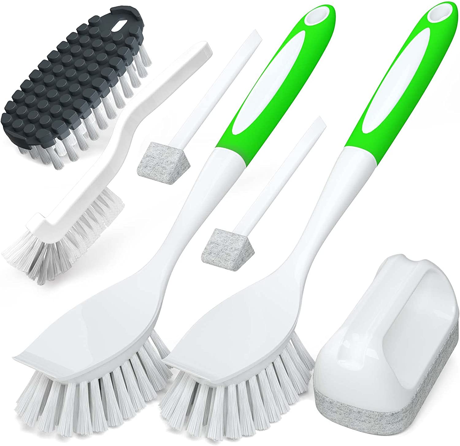 - ????【 7 Pack Kitchen Dish Brushes 】- All purpose to use, including Kitchen Dish Brush×2, Bendable Kitchen Brush×1, Scouring Pad Brush×1, Tile Lines Brush×1, Groove Gap Brush×2